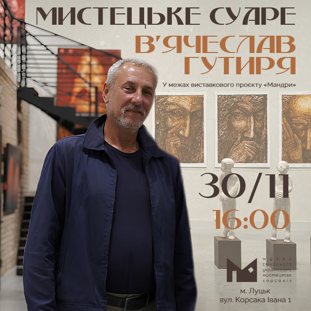 30 листопада о 16:00 в Музеї Корсаків (ІІІ поверх) в межах проекту В’ячеслава Гутирі «Мандри» відбудеться мистецьке суаре з автором!